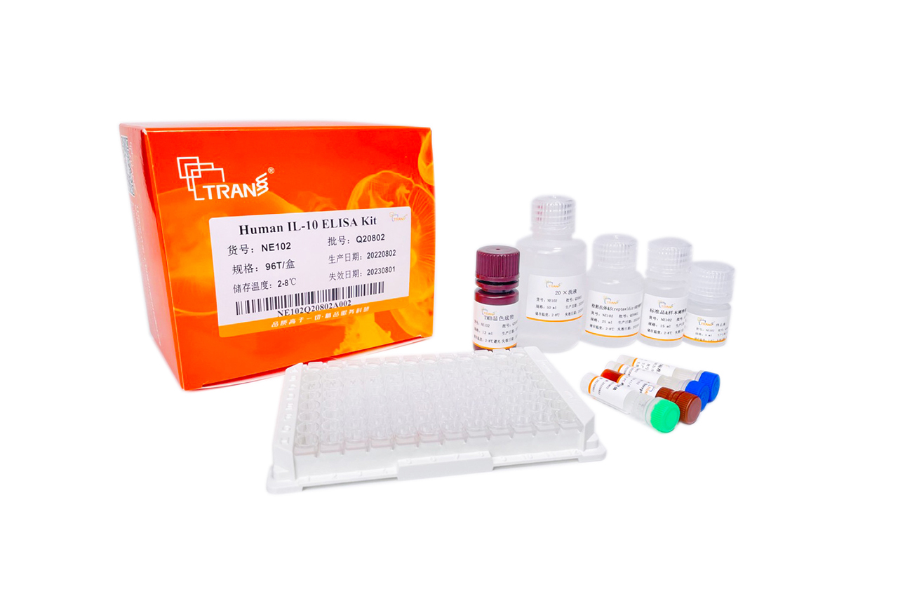 本試劑盒采用雙抗體夾心ELISA法定量測定人血清、血漿和細(xì)胞培養(yǎng)上清中的IL-10含量。本試劑盒采用高親和力的抗人IL-10抗體預(yù)包被酶標(biāo)板,將標(biāo)準(zhǔn)品/待測樣本加入微板孔中,經(jīng)過孵育后樣本中存在的IL-10會與酶標(biāo)板上的預(yù)包被抗體特異性結(jié)合。洗滌去除未結(jié)合物后,將生物素標(biāo)記的抗人IL-10檢測抗體加入微板孔中,再次孵育后檢測抗體會與錨定在酶標(biāo)板上的IL-10特異性結(jié)合。隨后,將辣根過氧化物酶標(biāo)記的鏈霉親和素(Streptavidin-HRP)加至微孔板中并孵育,通過檢測抗體上的生物素和鏈霉親和素發(fā)生的高強度非共價結(jié)合,形成“包被抗體-人IL-10蛋白-檢測抗體-Streptavidin-HRP”免疫復(fù)合物。再次洗滌后,將顯色底物TMB加至微板孔中,HRP會催化TMB底物生成藍(lán)色產(chǎn)物,顏色反應(yīng)的深淺將與樣本中IL-10的濃度成正相關(guān)。而后加入終止液終止反應(yīng),在450 nm波長(參考波長570 - 630 nm)處測定吸光度值。通過繪制標(biāo)準(zhǔn)曲線,由樣本吸光度值可計算出樣本中所含IL-10濃度。本試劑盒特異性強、檢測靈敏度高,同時操作更加便捷。