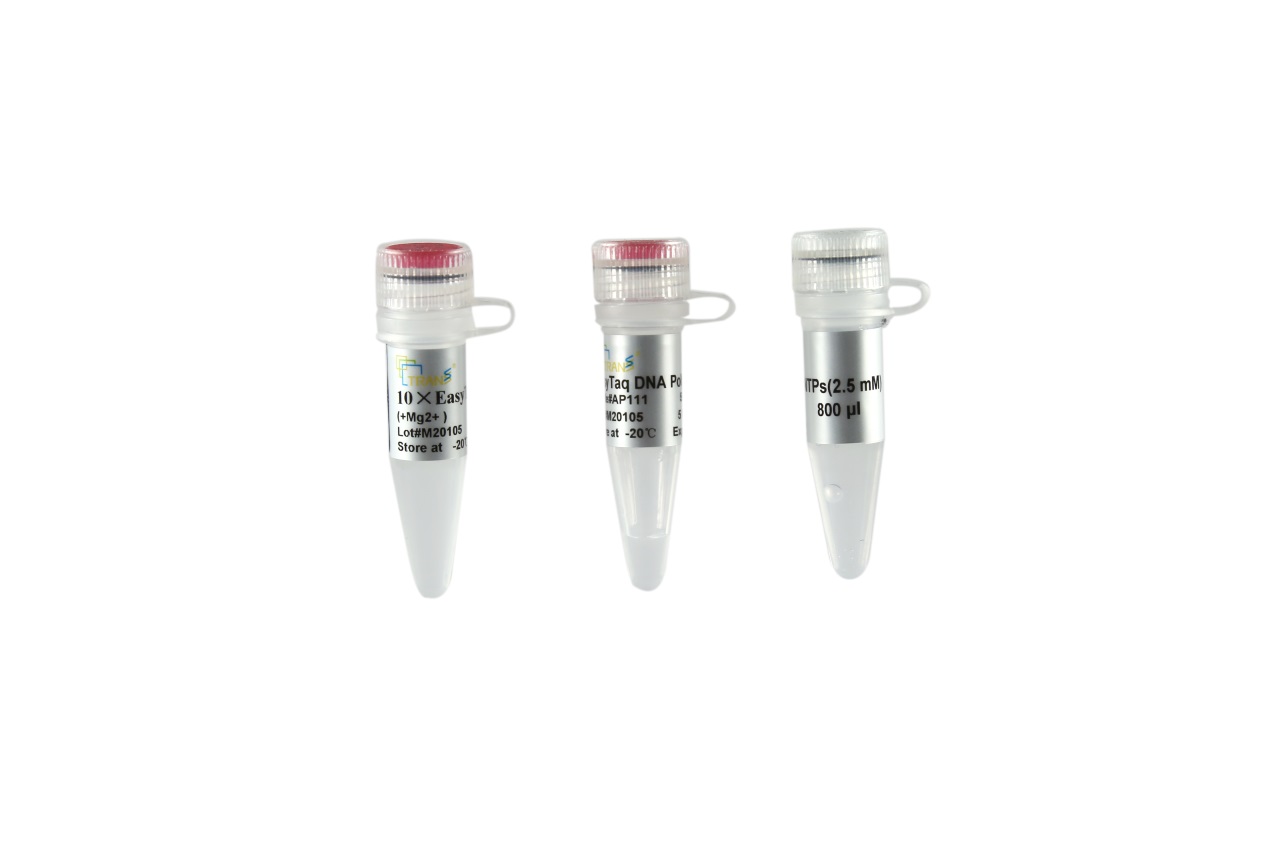 EasyTaq? DNA Polymerase是從克隆有Thermu aquaticus DNA Polymerase基因的載體,在大腸桿菌中經(jīng)誘導(dǎo)表達(dá)、分離純化而成,其分子量為94 kDa。EasyTaq? DNA Polymerase具有5'→3' DNA聚合酶活性和5'→3'外切酶活性,無(wú)3'-5'外切酶活性。其PCR產(chǎn)物不適用于聚丙烯酰胺凝膠電泳。