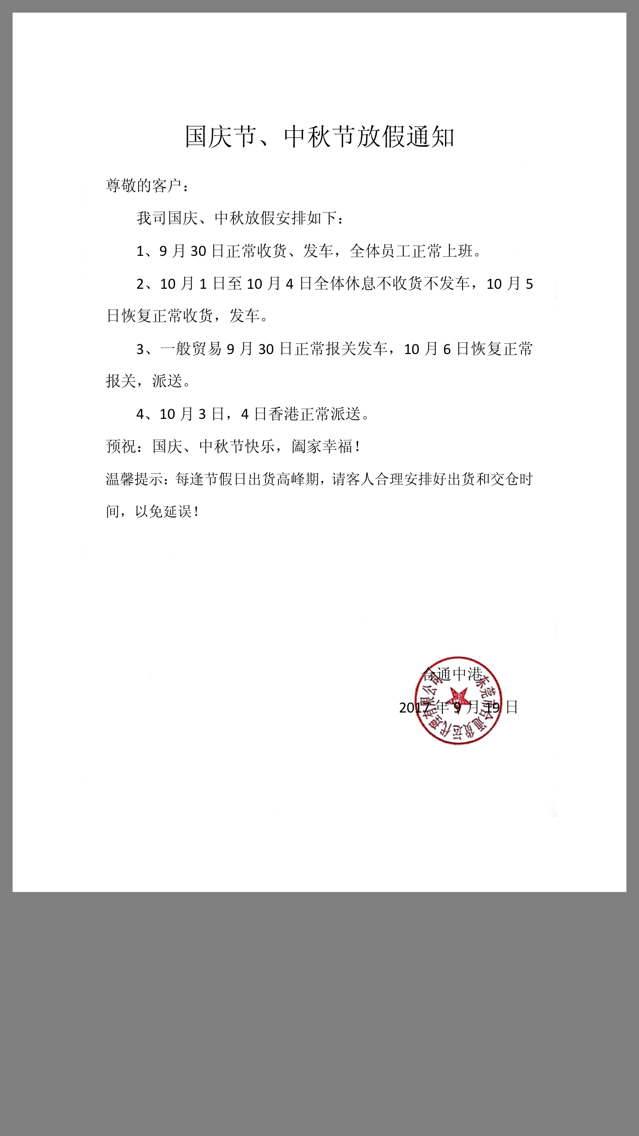 2017年國慶放假通知
