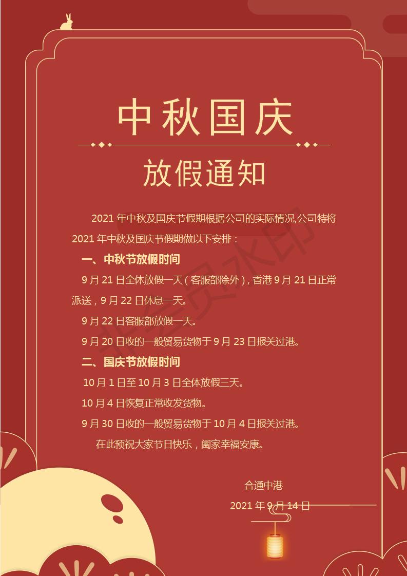 2021中秋國慶放假通知