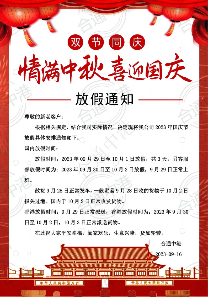 2023中秋國慶放假通知