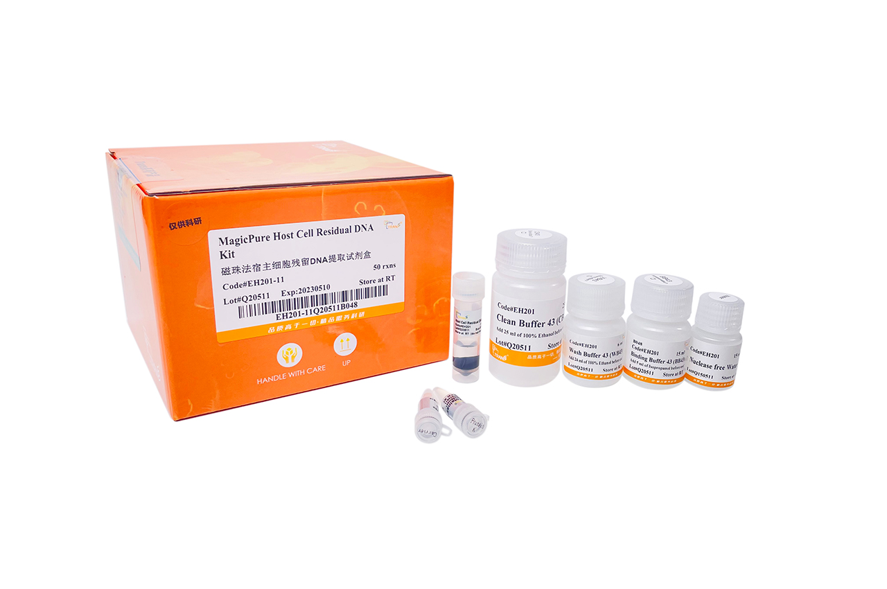 本試劑盒采用獨(dú)特的裂解液釋放微量DNA,利用硅基磁珠特異性吸附并純化宿主細(xì)胞殘留DNA。用于從≤200 μl生物制品樣本中提取宿主細(xì)胞(CHO、Vero、NS0、MDCK等)的微量DNA片段。所得產(chǎn)物純度高,適合PCR,RT-PCR,qPCR和qRT-PCR等實驗。本試劑盒也可搭配高通量磁棒式核酸提取儀。