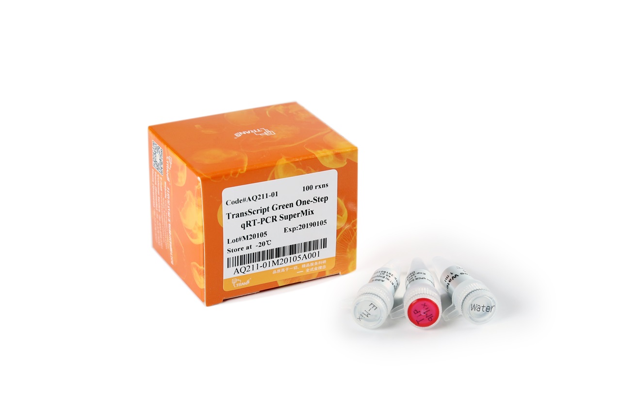 TransScript? Green One-Step qRT-PCR SuperMix是具有高靈敏度、高效合成能力和高擴(kuò)增效率的一步法qRT-PCR試劑盒。本試劑盒以RNA為模板,反向基因特異引物為反轉(zhuǎn)錄引物合成cDNA;然后以合成的cDNA為模板,正向、反向基因特異引物進(jìn)行qPCR,在同一反應(yīng)體系中一步完成從反轉(zhuǎn)錄到qPCR的全部反應(yīng)。