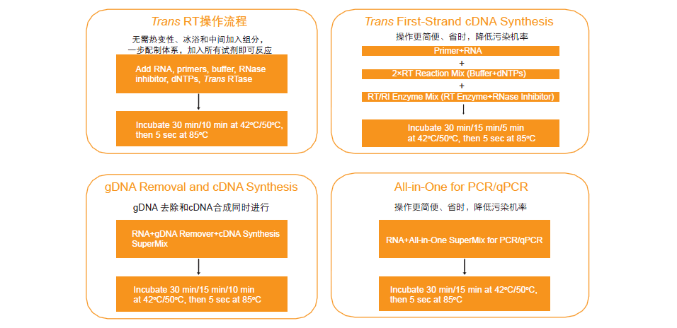 ? 產(chǎn)物用于qPCR:反轉(zhuǎn)錄15分鐘;產(chǎn)物用于PCR:反轉(zhuǎn)錄30分鐘。
