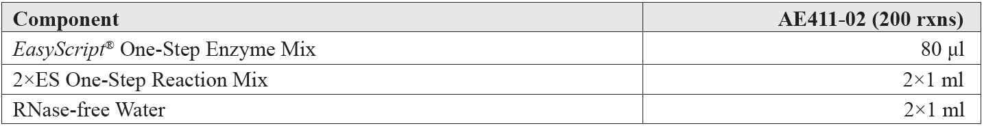 EasyScript? One-Step RT-PCR SuperMix是具有高效合成能力和高擴(kuò)增效率的一步法RT-PCR試劑盒。本試劑盒以RNA為模板,反向基因特異引物為反轉(zhuǎn)錄引物合成第一鏈cDNA;然后以合成的cDNA為模板,用正向、反向基因特異引物進(jìn)行PCR,在同一反應(yīng)體系中一步完成從反轉(zhuǎn)錄到PCR的全部反應(yīng)。擴(kuò)增產(chǎn)物可直接點(diǎn)樣電泳。
